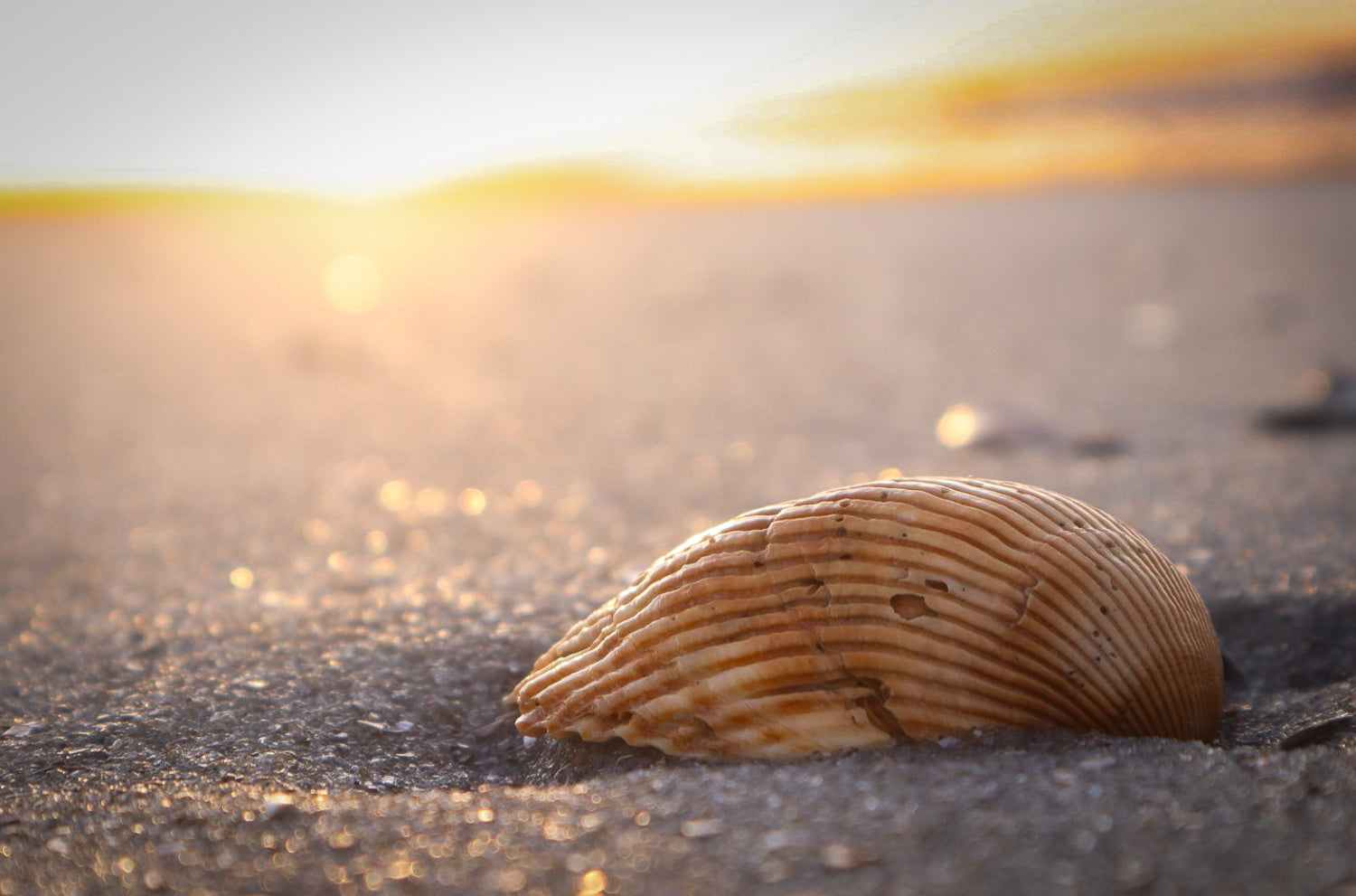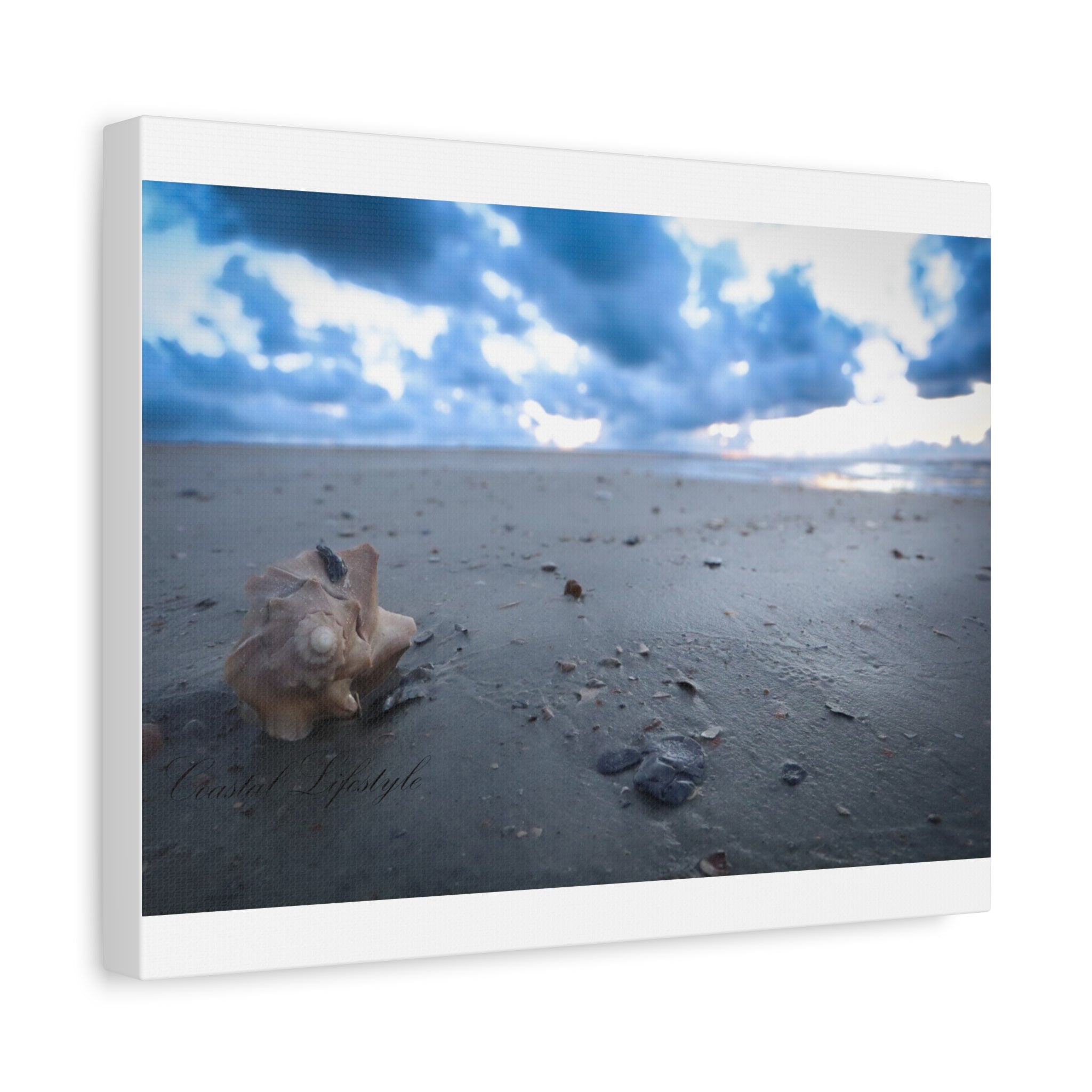 Shells, Sand, Beach, and Sunrise on Canvas