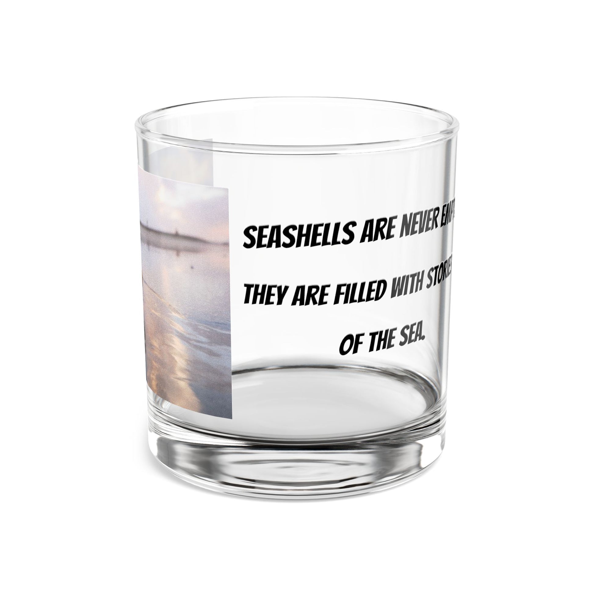 This elegant glass showcases a stunning image of a shell, sand, shoreline, and sunrise, accompanied by the saying 'Seashells are never empty They are filled with stories of the sea.' Perfect for those who love the beach and ocean vibes, this glass is ideal for sipping cocktails or enjoying a refreshing drink while reminiscing about seaside memories. Great for beach lovers, coastal decor enthusiasts, and those who appreciate nautical themes. Perfect for summer parties, beach house gatherings, or as a thoughtful gift for ocean enthusiasts.